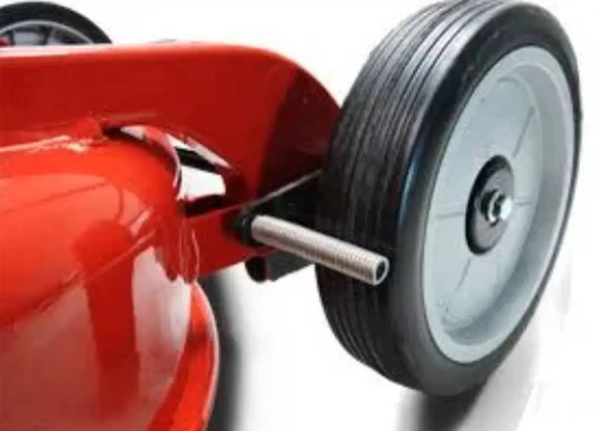 En skrape som fjerner gressklipp som har festet seg på hjulene raskt og effektivt.