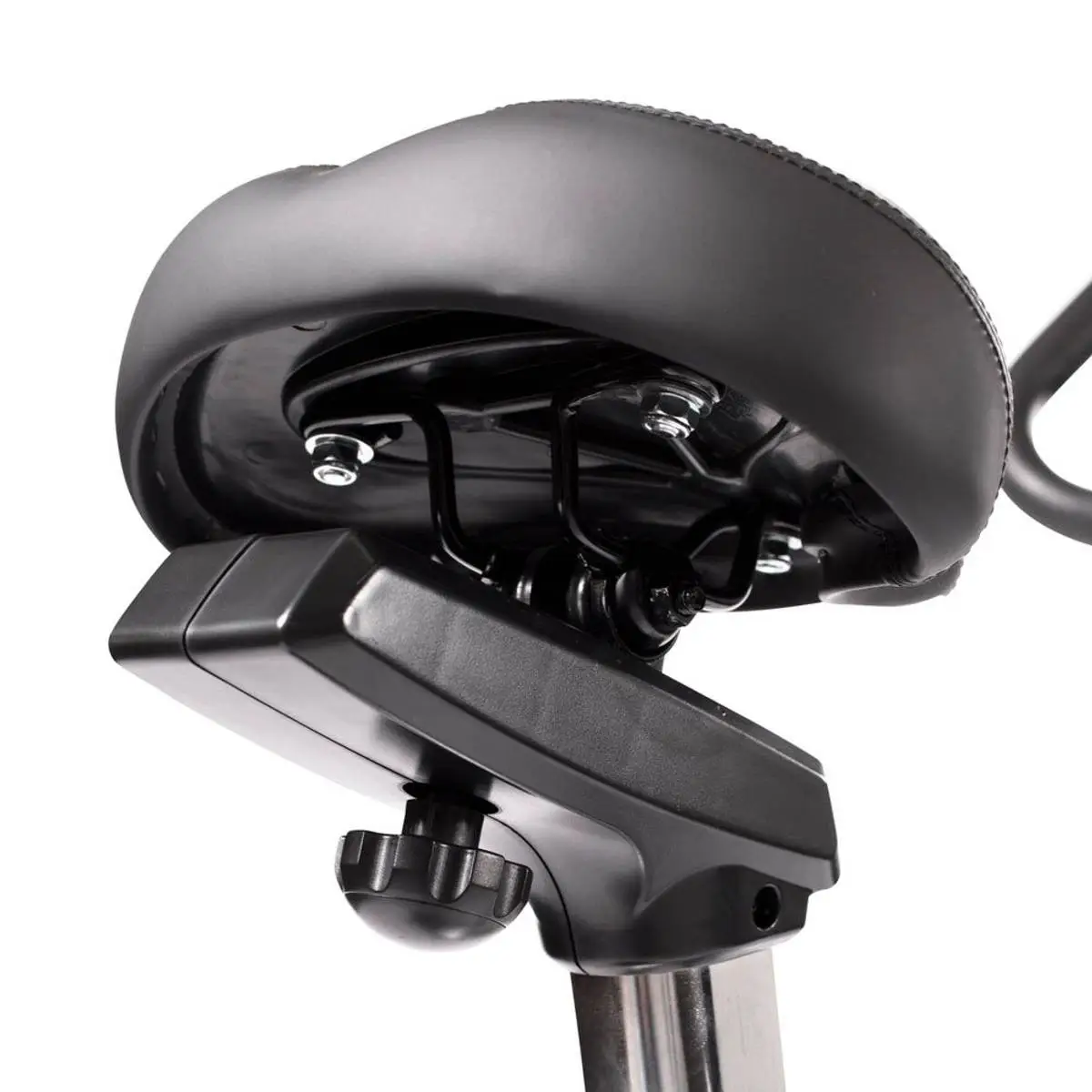 Pulstrening med pulsbelte er valgfritt mulig, siden datamaskinen har en innebygd mottaker for ukodede pulsbelter med en overføringsfrekvens på 5,0-5,5 kHz. Komfortsadelen er horisontalt, vertikalt og tilt-justerbar og sikrer en komfortabel treningsstilling.