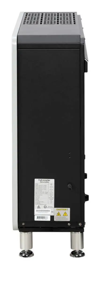 Kompressor og ventilator har altså 100 % frekvensstyring og avfukteren tilpasser seg hele tiden den relative fuktigheten i rommet automatisk.