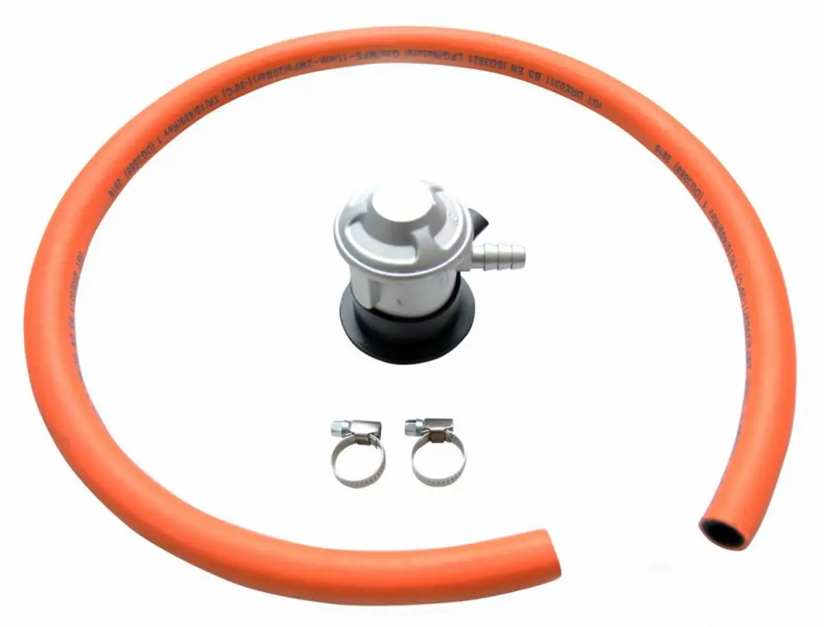 Gass regulator og slange 1,1 m Inkl. strammebånd Pakket i pose m/header