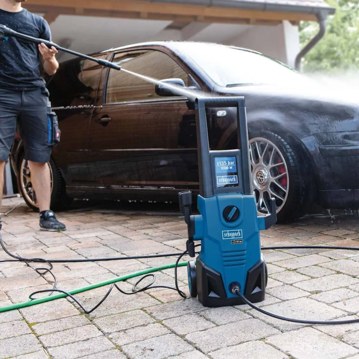 Med sine 135 bar er Scheppach HCE1600 høytrykksvasker et ekte kraftsenter som aldri går tom for strøm for noen rengjøringsjobber rundt huset og hagen.