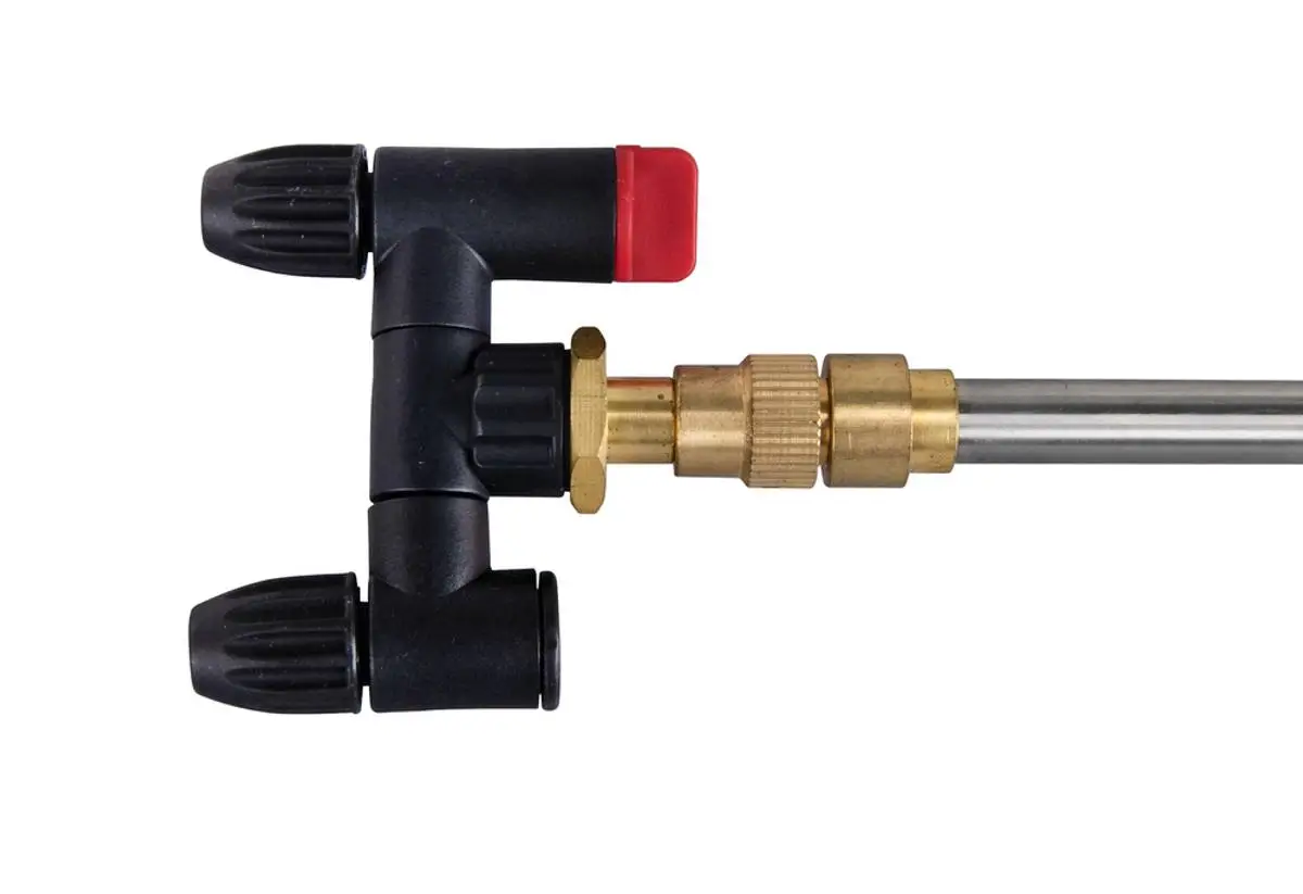 Lavtrykksprøyte 5 liter med skulderrem og lengdejusterbar lanse med to dyser.