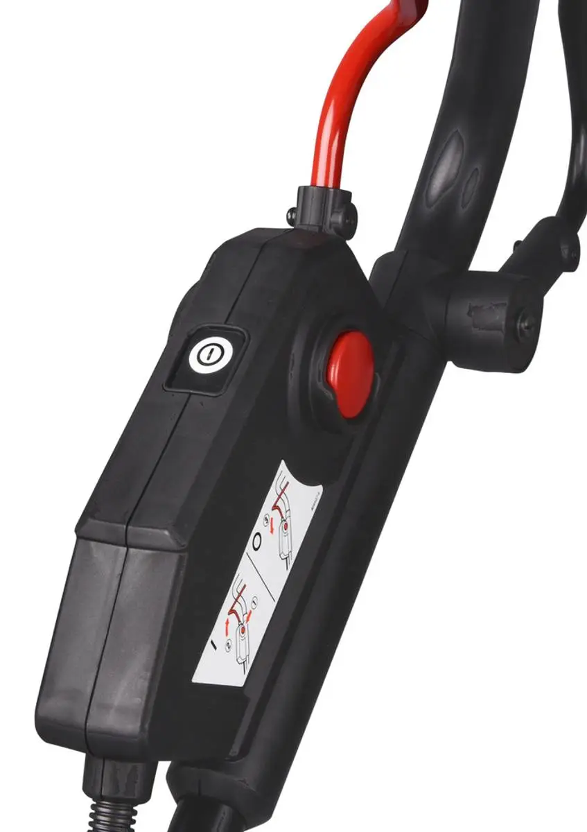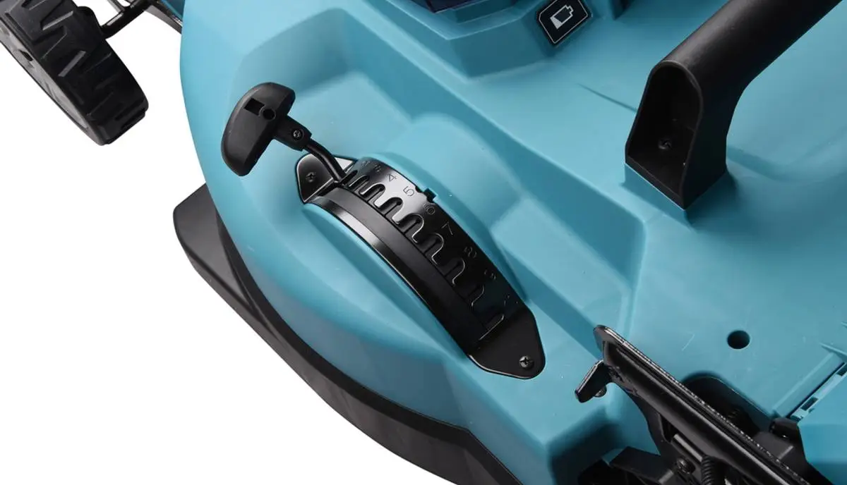 Justerbar klippehøyde 10 trinn 20 – 100 mm. Store hjul med for bedre fremkomlighet og lavere rullemotstand. Justerbar hastighet fra 2,5 – 5,0 km/t. Elektrisk brems ved klippe stopp. Motor 860 watt og 3000 omd. pr. min. Med 2 stk.18V 6,0 Ah batterier opptil 800 kvm. eller opptil 25 min drift.