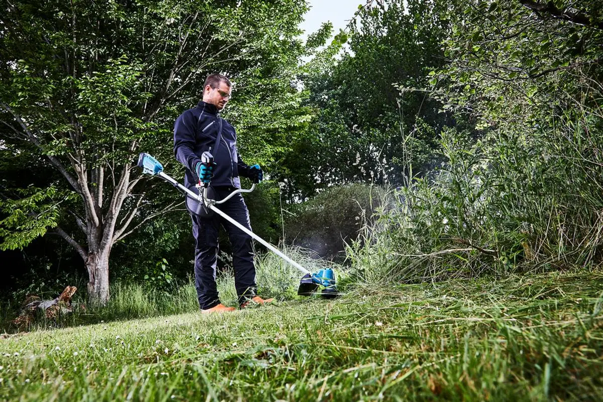 Gresstrimmer med auto -hastighetskontroll for best mulig utnyttelse av batterikapasiteten.