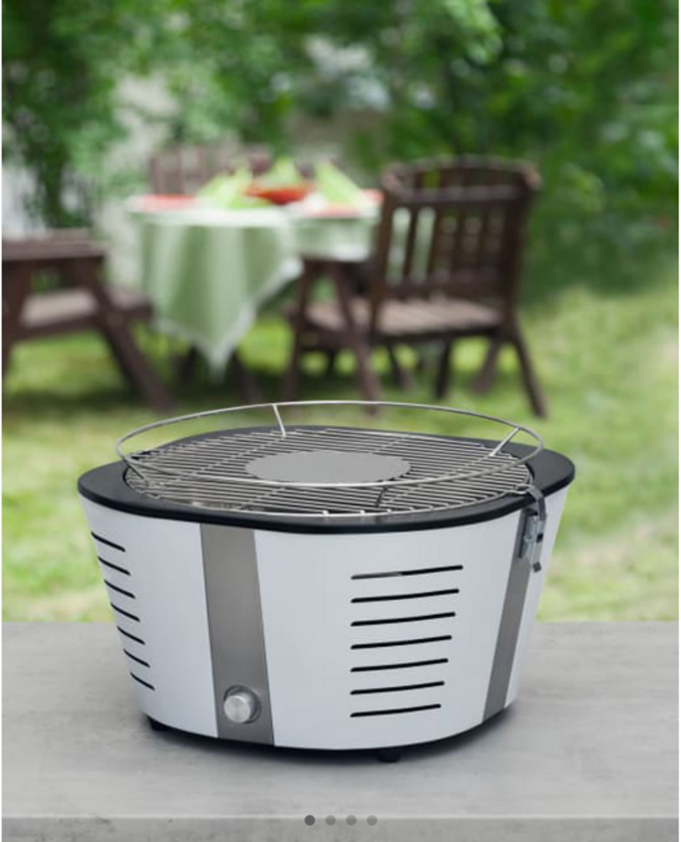 Røykfri grill med innebygget vifte som blåser luft direkte inn i kullet. Kullet brenner da hardere,renere og mer effektivt.