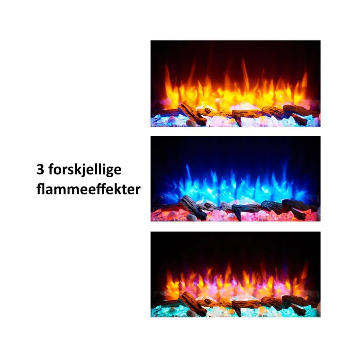 Volda gir deg alle ønskelige valg innen farge på flammer og glør, og en behagelig varme når du ønsker det. Varmedelen styres uavhengig av lys og flammer, og kan kjøre både på program (uke eller dag) eller kun på termostat.