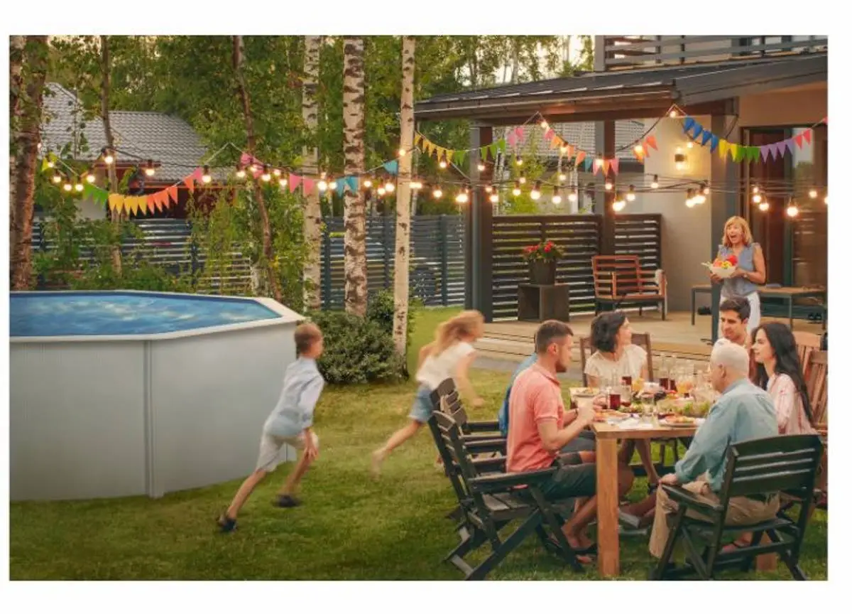 Bassengpakken inkluderer alt til overjordisk basseng i hagen eller i sommerhuset.