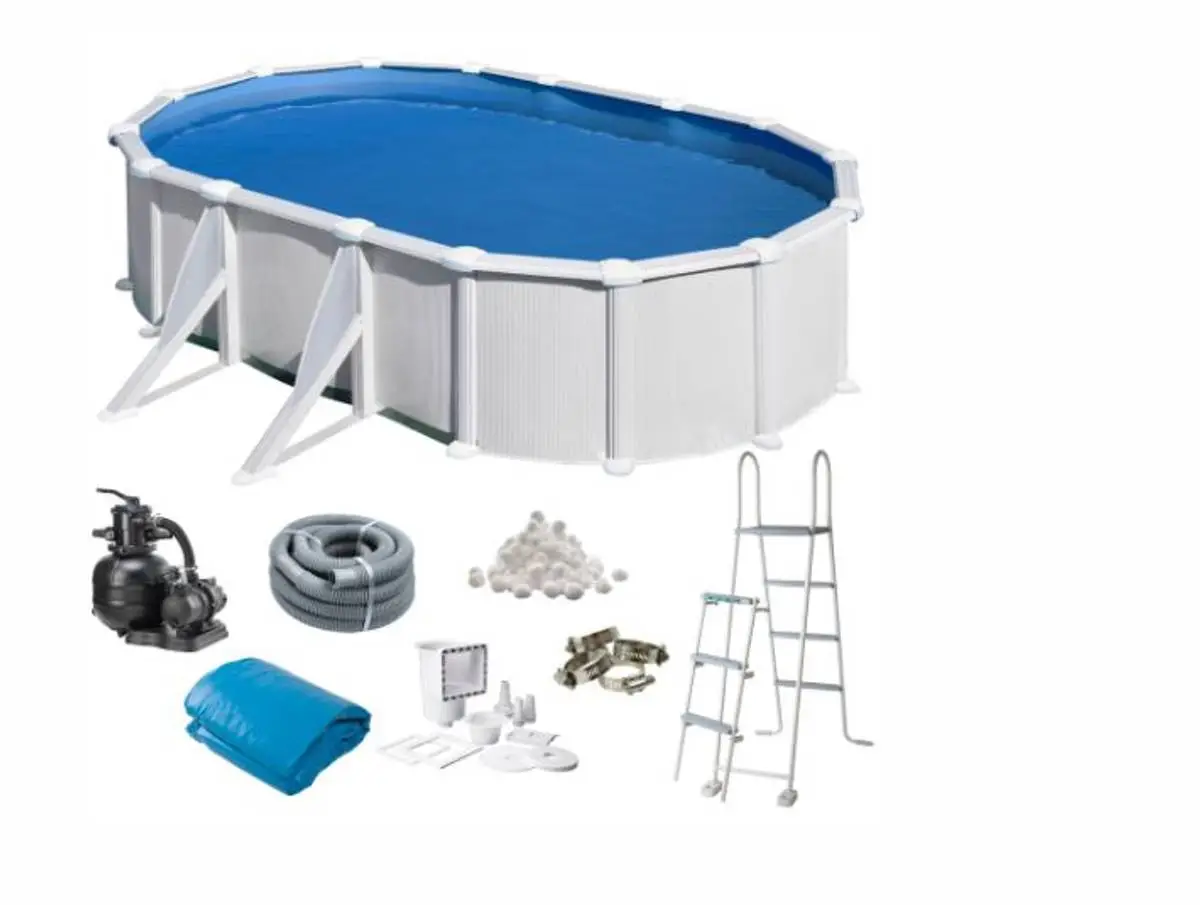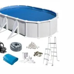 Komplett bassengpakke med ovalt frittstående familiebasseng og stor tilbehørspakke 6,1 x 3,75 x 1,32 m