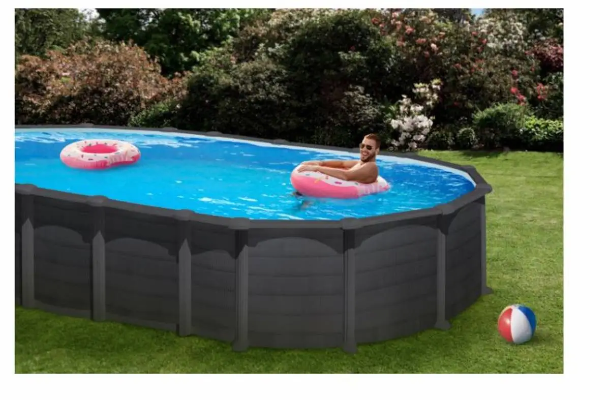 Swim & Fun basic svømmebasseng oval 610 x 375 x 132 cm, svart grafitt 2736
