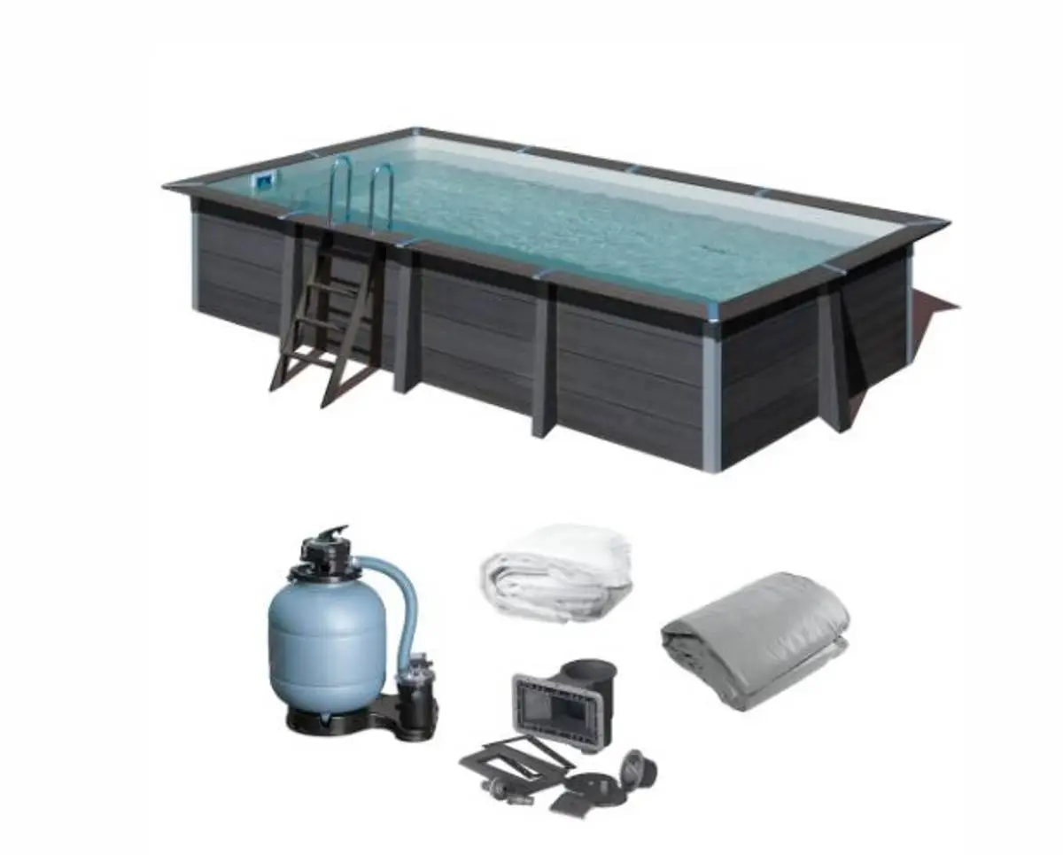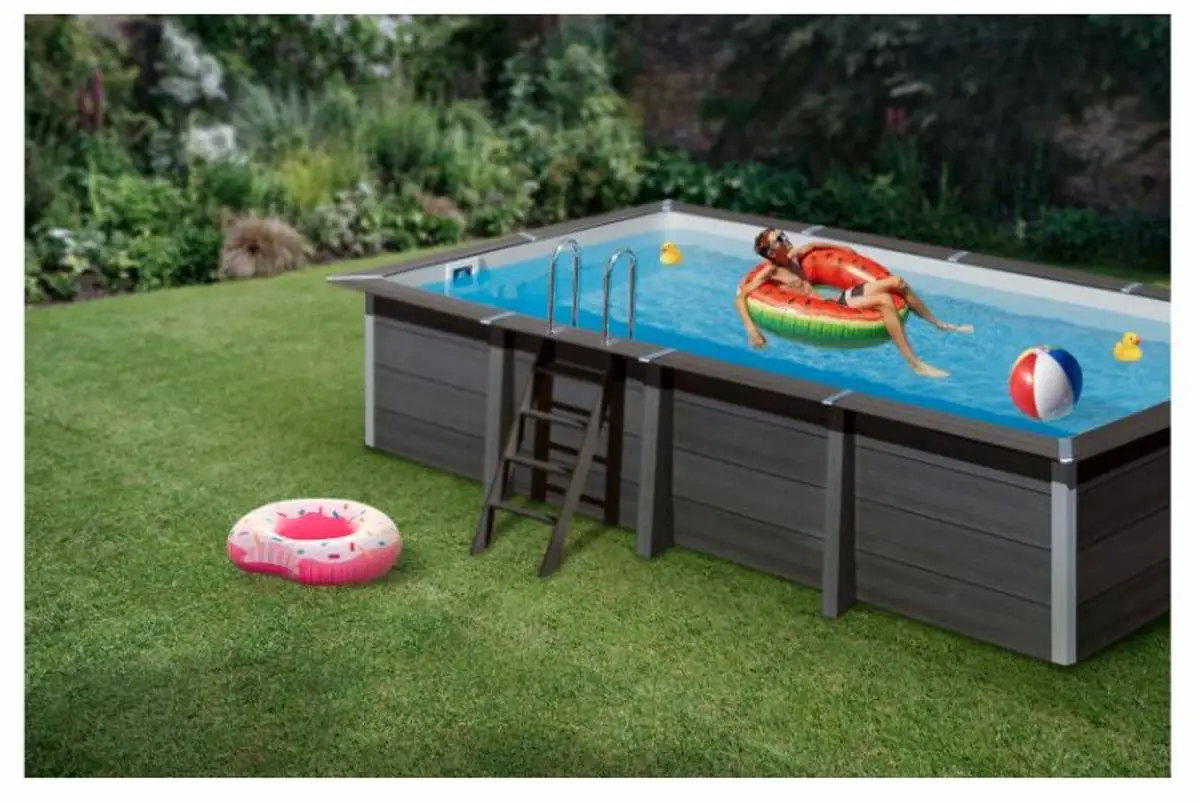Swim & Fun komposittre svømmebasseng rektangulært kullgrått 606 x 326 x 124 cm 2761