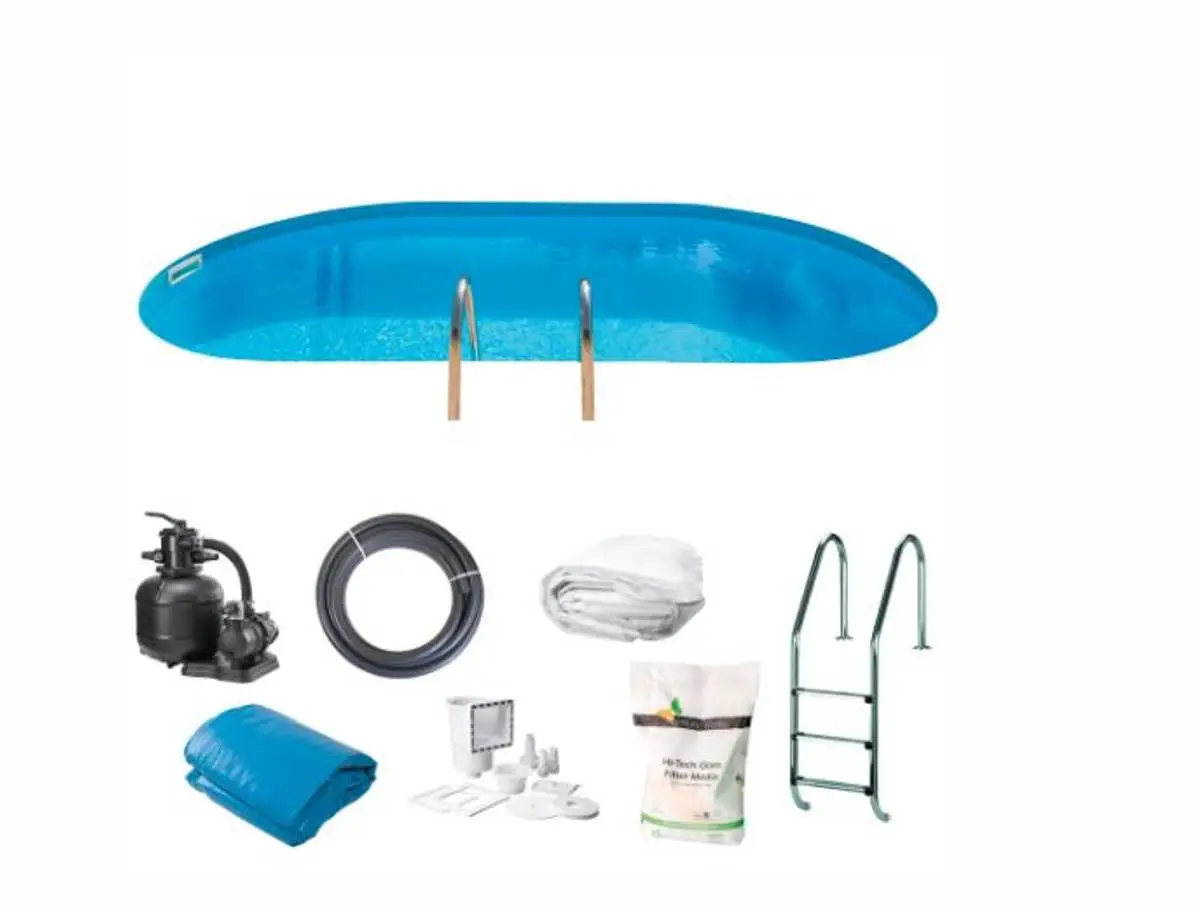 Komplett bassengpakke – 1,50 m dypt og 7,0 x 3,2 m, kraftig kvalitet, velegnet for nedgraving, og med ekstra holdbarhet