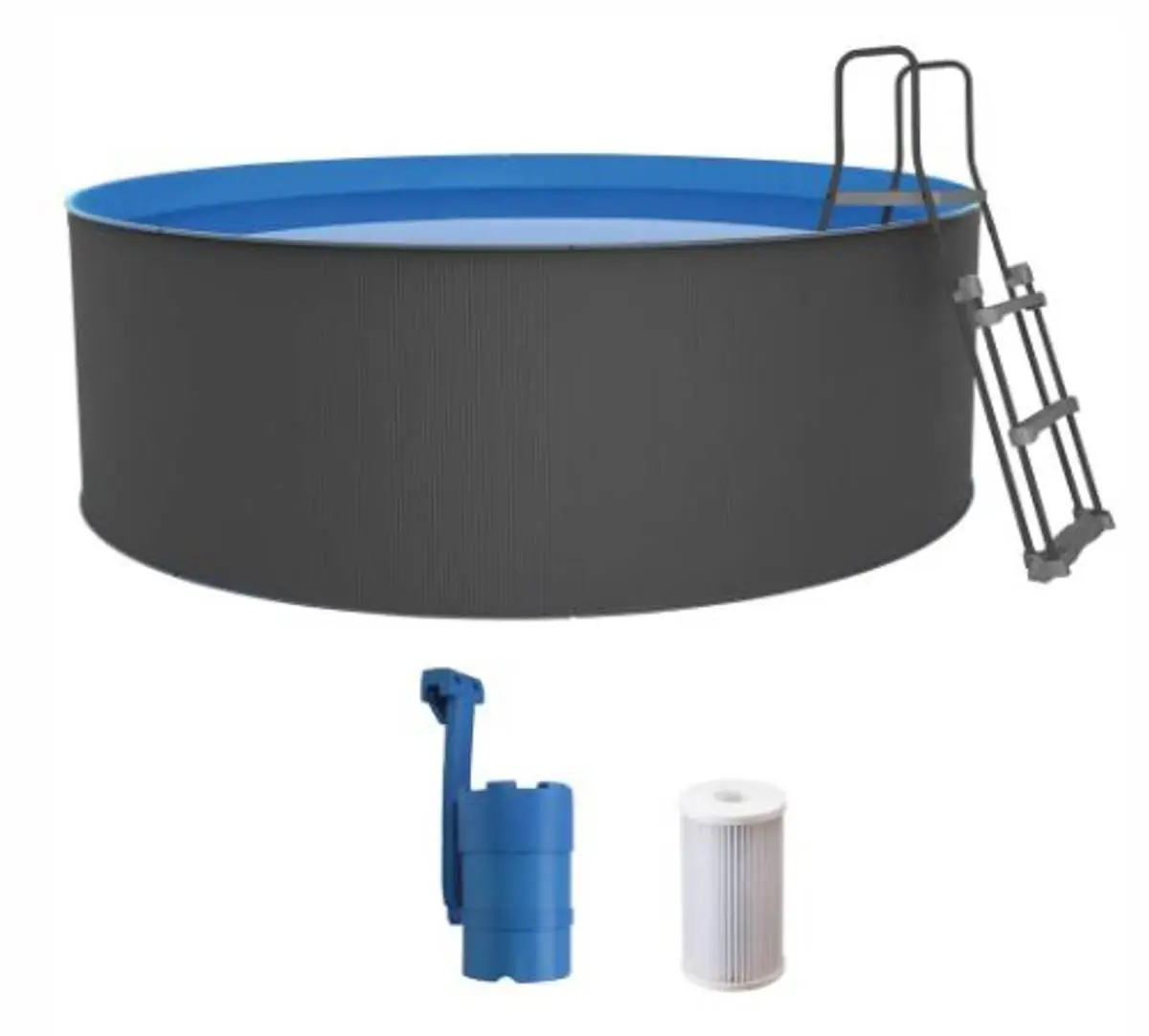 Komplett familiebasseng med oppsamlerpumpe og stige – Ø 4,6 x 0,9 meter