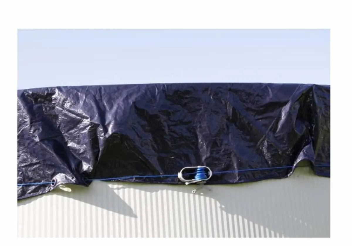 Vintertrekk med wirelås som hindrer vannfordamping og holder blader, smuss og sollys borte fra bassengvannet.