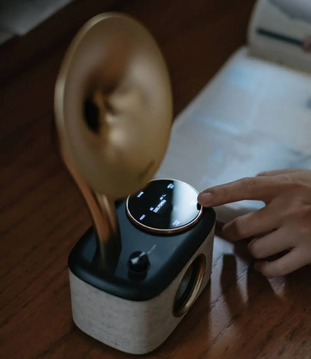 Oppladbar, 20 forhåndsinnstillinger for stasjoner (10 DAB/10 FM), Bluetooth 5.0, digital berøringsskjerm med justerbar følsomhetskontroll, LED -ladeindikator, innsovningstimer, justerbar dimmer, bassrefleksrør for rikere bass, AUX-inngang for flere lydkilder, ekstern trådantenne, DC-In (USB Type-C 5V/2.4A)