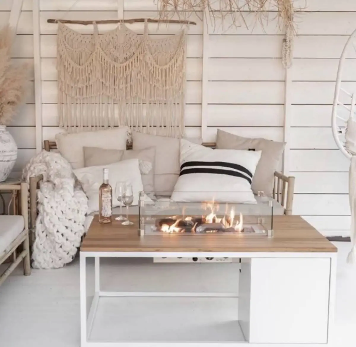 FIRE PIT 120 KAFFEBORD hvit ramme Teak topp