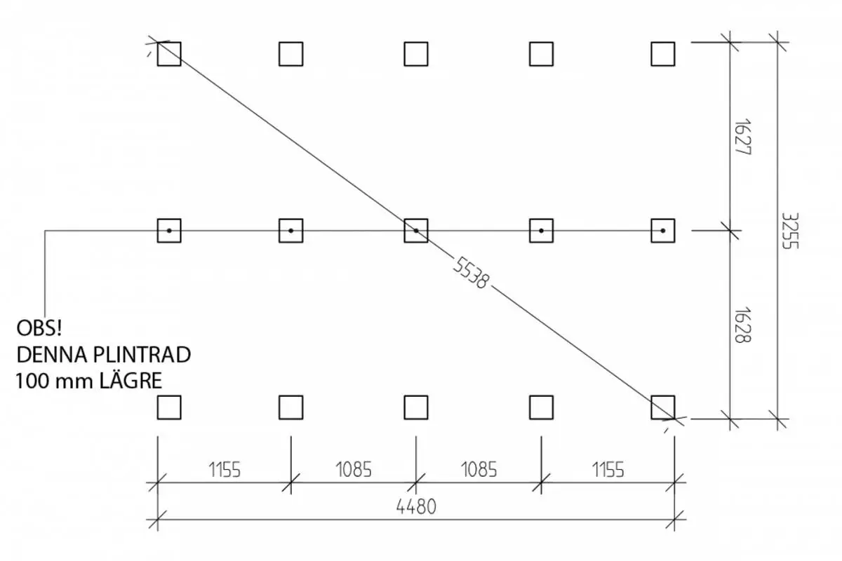Bærelinje 100, gulv 34 x 120, undergulv tre 21 mm.
